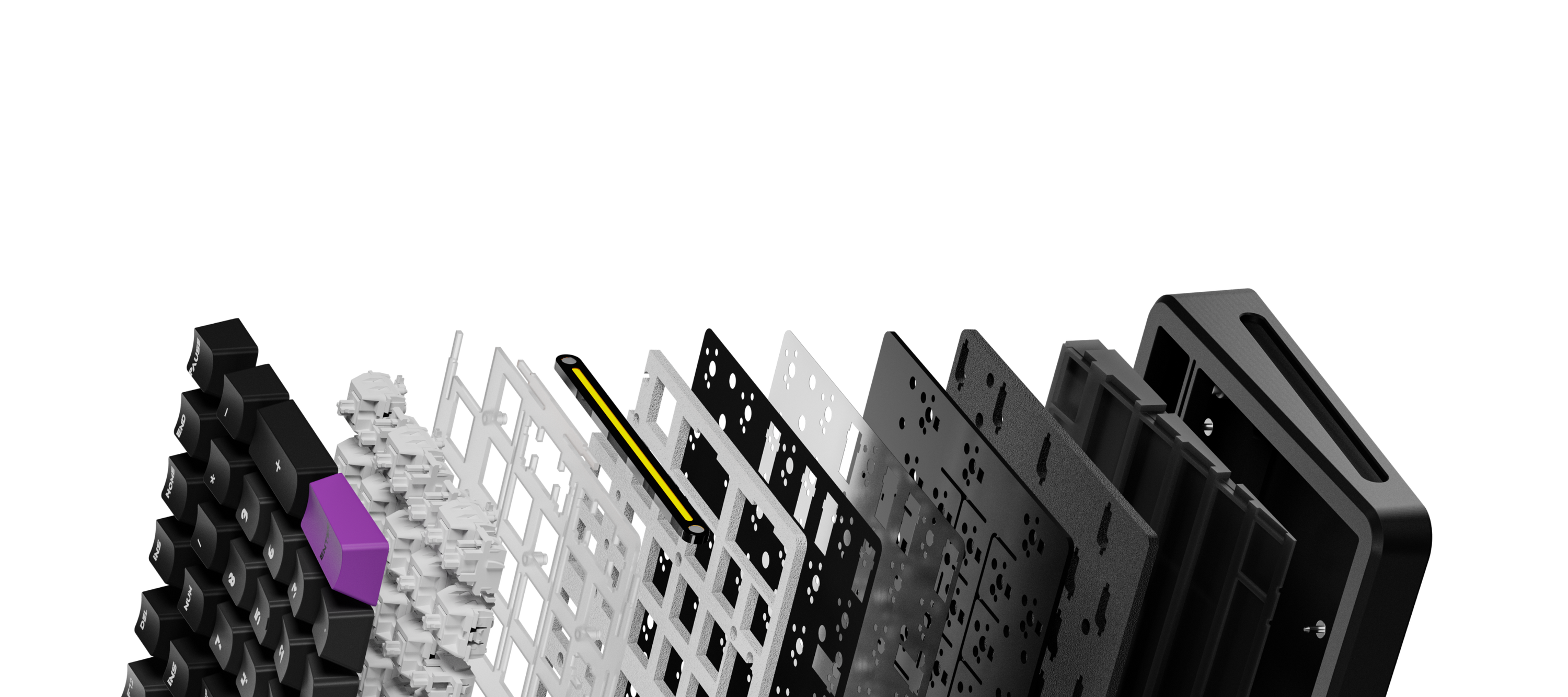 Poron PCB Foam + 10x IXPE Switch Pad + PET Acoustic Sheet + EPDM Case Foam + Silicone Bottom Pad