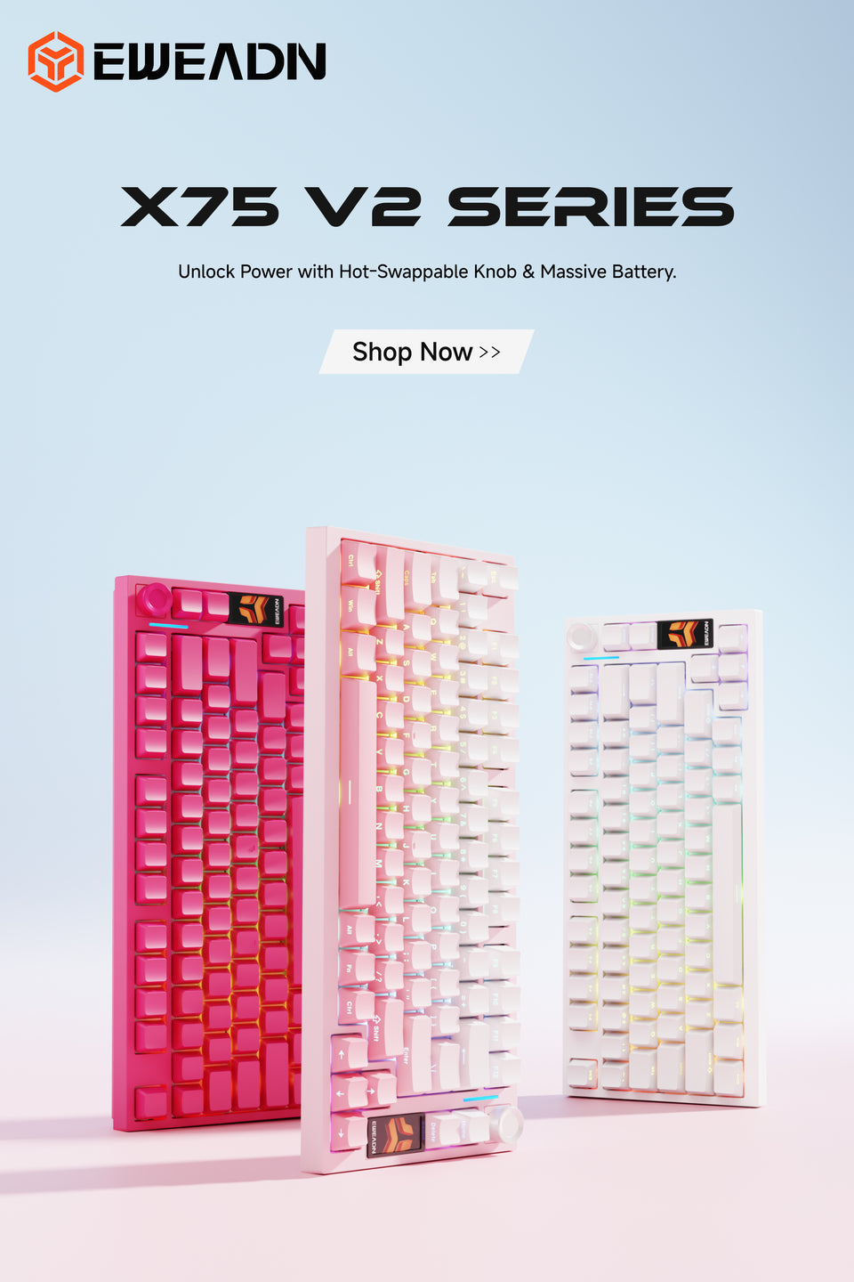 The X75 is built with a precisely engineered structure, revealing every detail through its exploded view. From the gasket mount and hot-swappable PCB to the premium keycaps and CNC knob, each part is designed to integrate seamlessly, delivering lasting durability, versatile connectivity, and a refined typing experience.