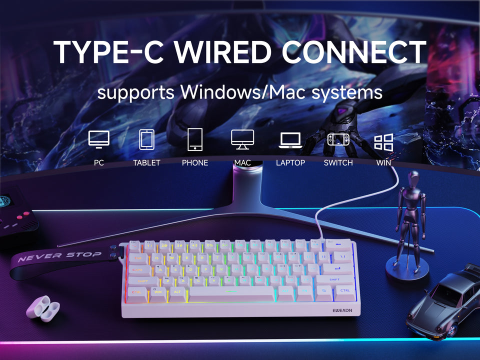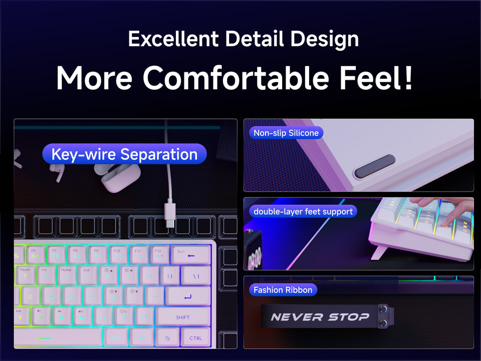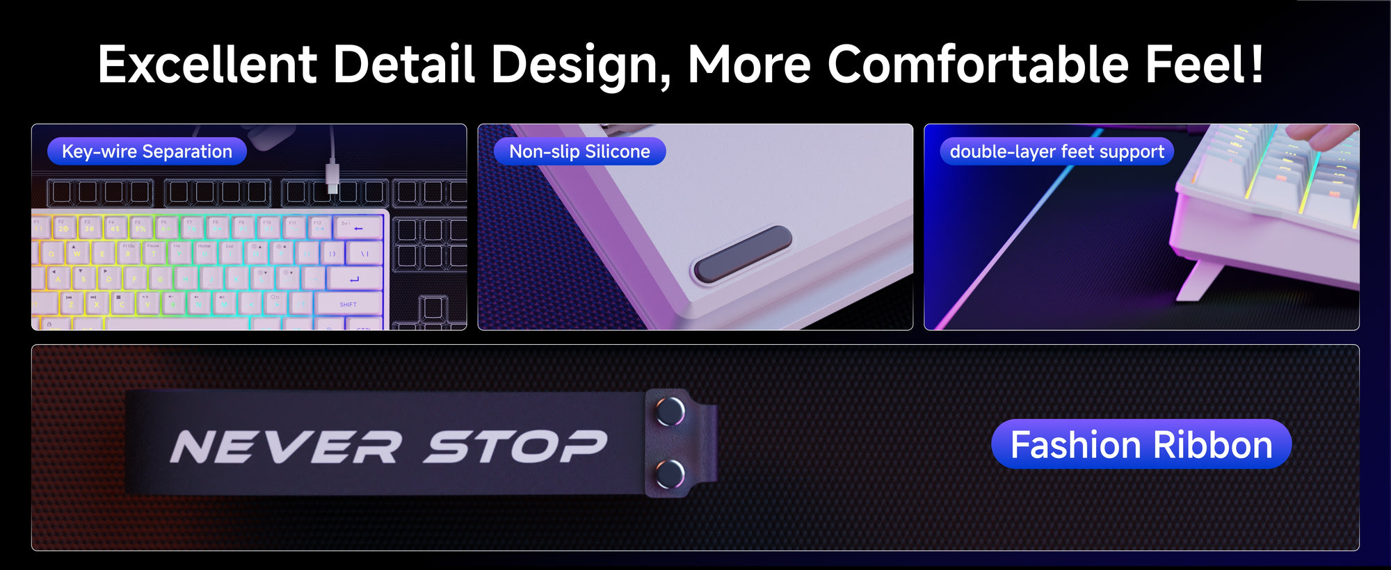 Decorative Accent StripA sleek design strip adds a stylish touch, enhancing the keyboard’s overall aesthetic.