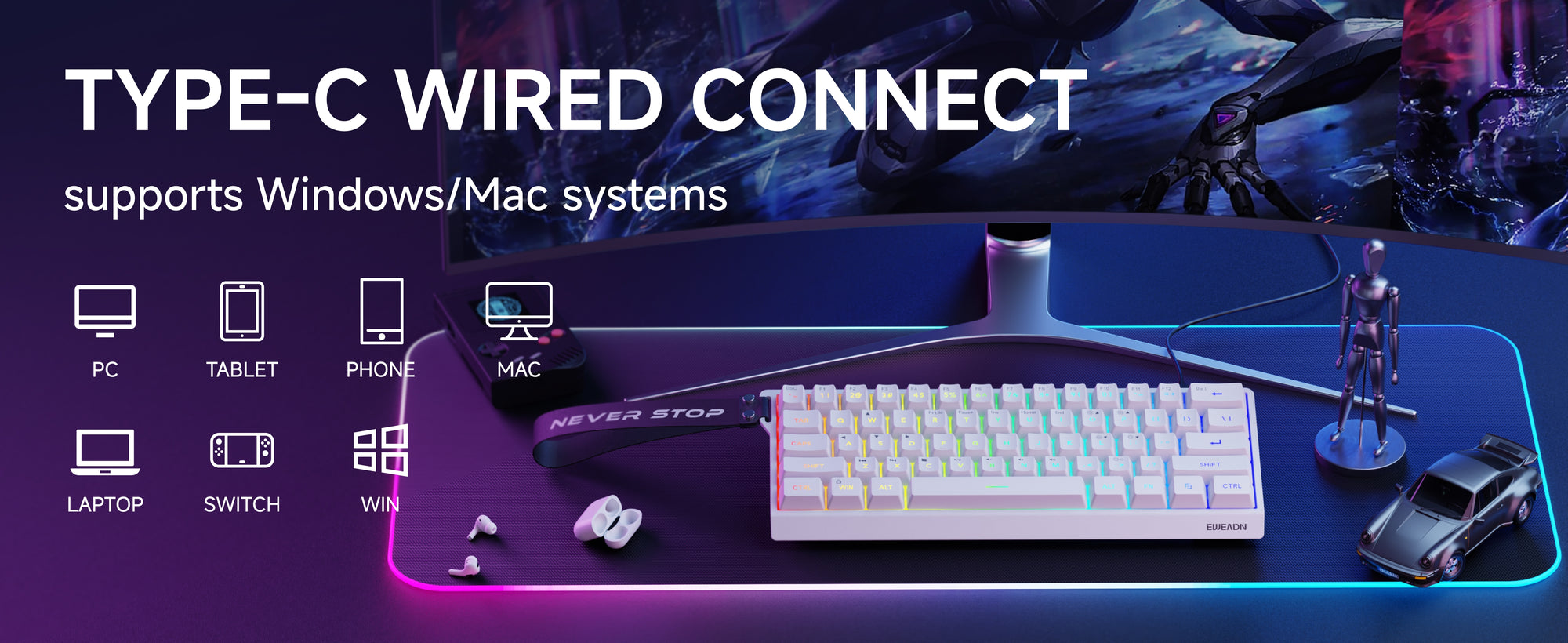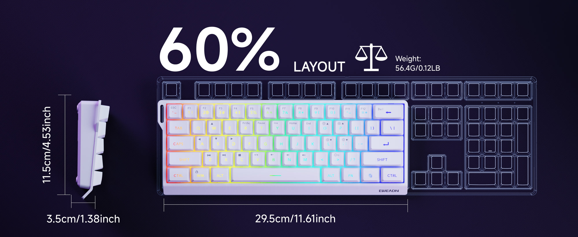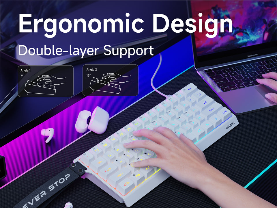 Ergonomic LayoutThoughtfully designed with an optimized key arrangement for comfort during long typing or gaming sessions.