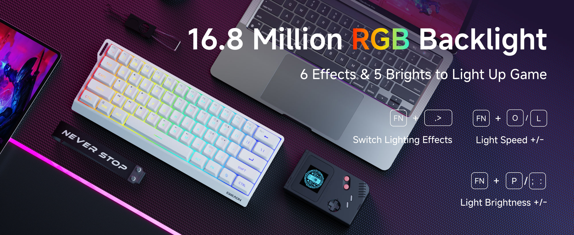 Dynamic RGB BacklightingMultiple preset effects with vivid RGB illumination for personalized setups.