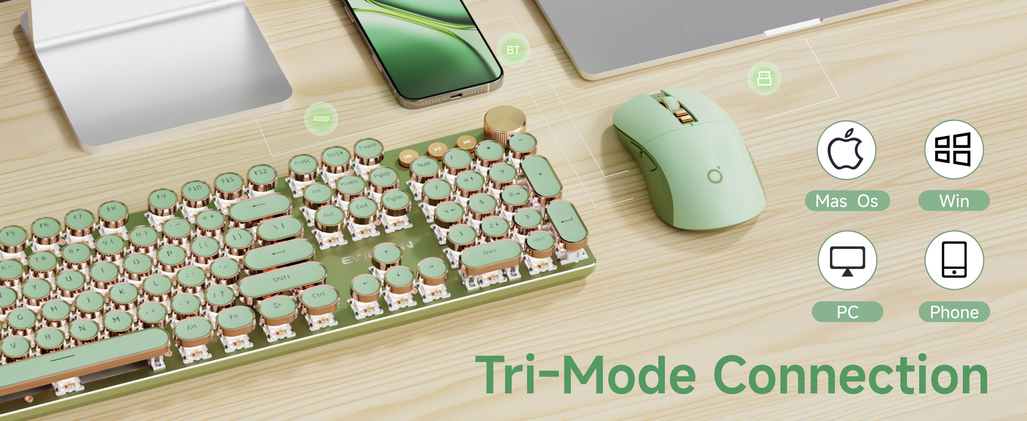Dual-Mode Connectivity: Switch between 2.4G wireless and Bluetooth for easy and flexible connection to any device.