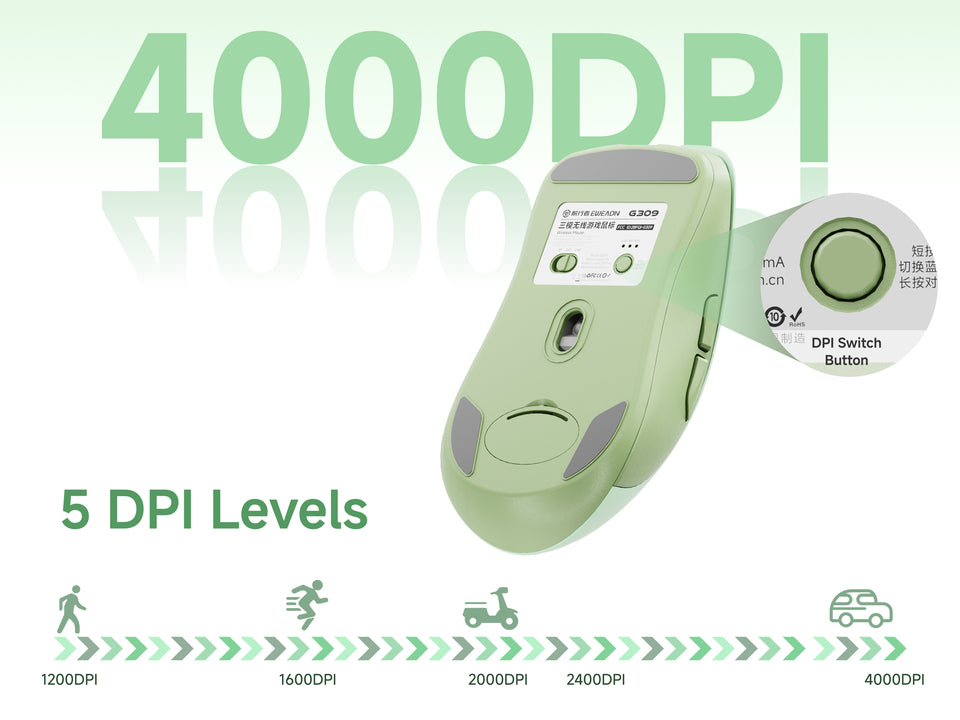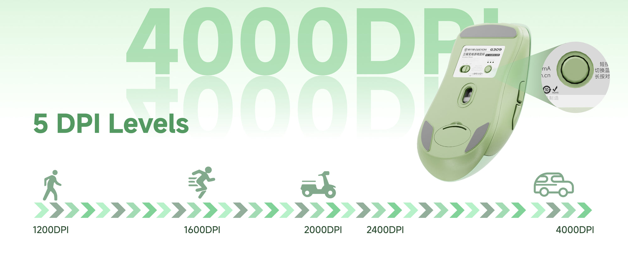 Adjustable DPI: Choose from four DPI levels (800/1200/1600/2400) for precise control over your movements.