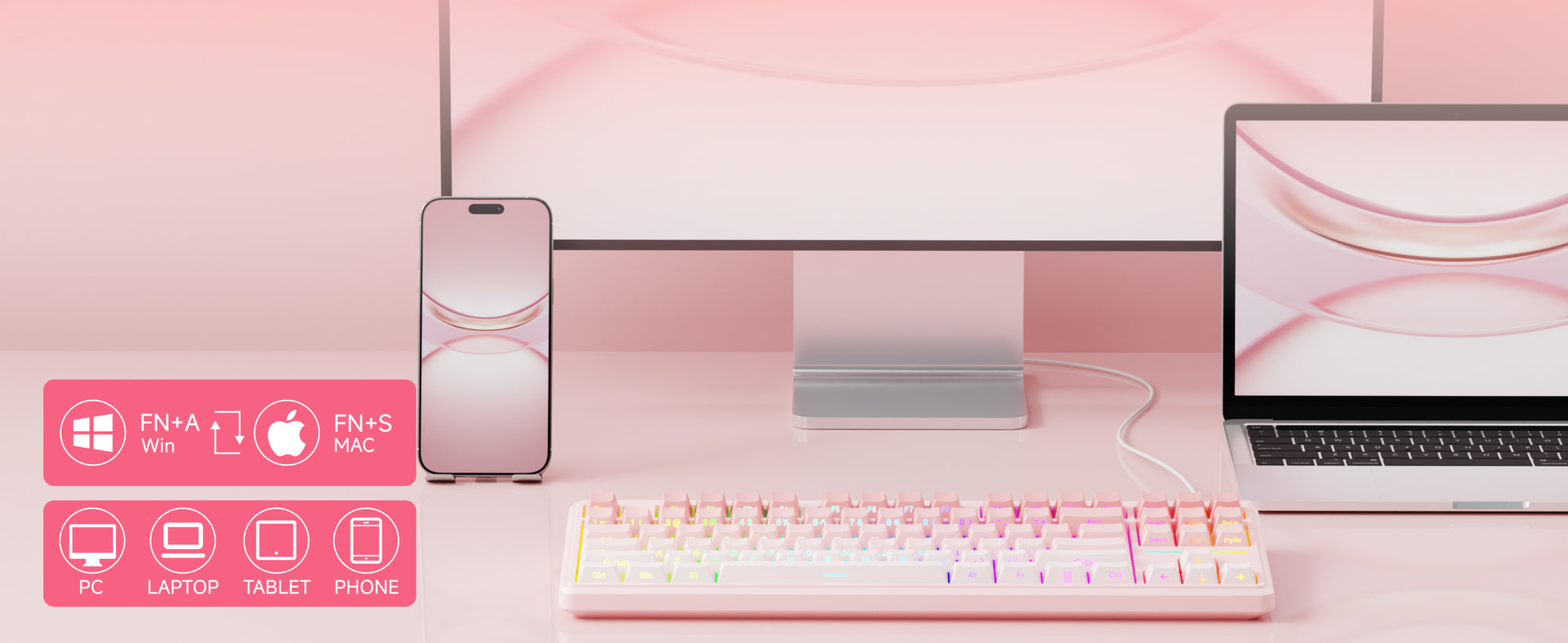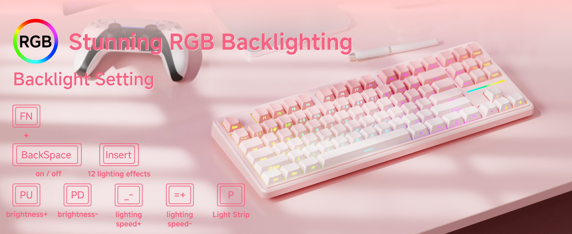 FN Shortcuts: Access lighting controls, backlight brightness, and key functions with convenient FN shortcuts.