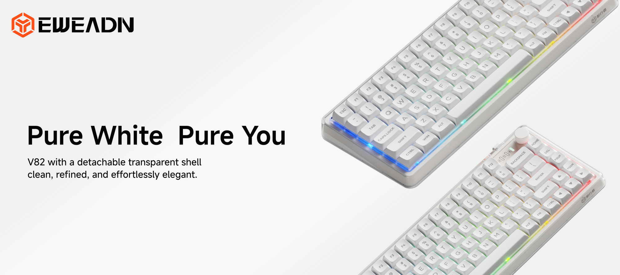 Explore the inner design of the V82, a keyboard meticulously crafted for those who appreciate both form and function. From the sleek, multi-layered construction to the pristine white chassis, every component is engineered for an unmatched typing experience. The V82's clean aesthetics and responsive key feel make it perfect for both professional environments and personal use.